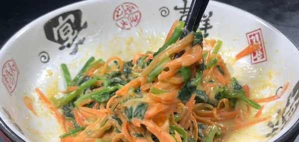 食材:菠菜、雞蛋、胡蘿卜、豆皮