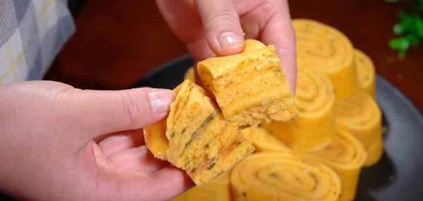 開蓋出鍋,再切成小塊,好方便實用,紅薯這樣做成面食,松松軟軟的,層次也很豐富,吃起來松軟咸香,蔥香味十足。