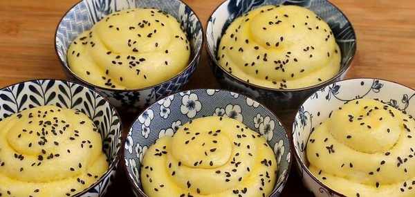 餳好後上面刷一層蛋黃液,再撒點黑芝麻,蓋上一層保鮮膜,大火蒸30分鐘左右。