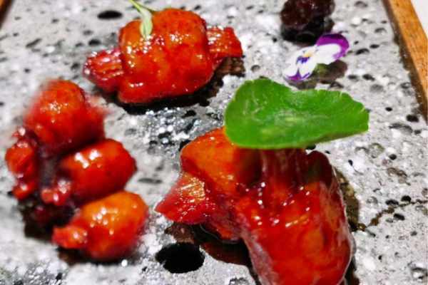 放入油鍋中炸制金黃,再用上述的調料燒至收汁,冷涼後切塊擺盤即可