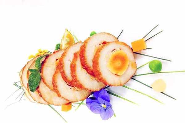 鮮橙子皮去掉皮內的瓤,頂刀切成絲,用瓶裝的金桔油煮開冷涼擺放在食材上即可