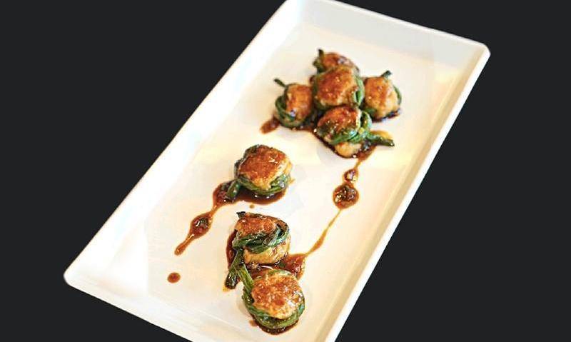 平地鍋燒熱黃油、蔥油,下入釀好的豇豆,煎至兩面金黃熟透,淋入調好的味汁燒入味即可出鍋。