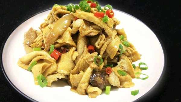 千葉豆腐、五花肉片少許、松茸、蔥花、泰椒、醬油、蒸魚豉油、老抽、十三香、糖、蘑菇精、雞粉、水