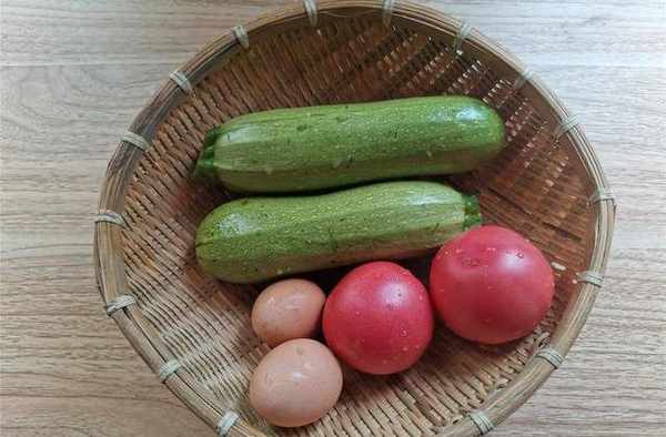 【西葫蘆番茄炒蛋】所需材料:西葫蘆2個、西紅柿2個、雞蛋2個、油鹽適量、小蔥1棵、大蒜2瓣、