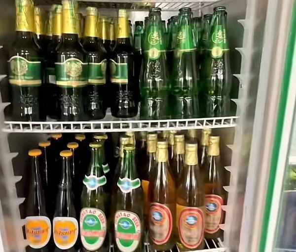 酒水市場也沒閑著。在各大視頻上,很多博主發佈瞭淄博燒烤的酒水推薦,部分明顯標註為“贊助”或廣告,有些即使沒有被平臺認定為廣告,也帶有明顯的推廣含義。在抖音,“摸魚姐妹”發佈一條視頻稱“吃淄博燒烤怎麼能不喝青島啤酒”,並在視頻中展示一燒烤店內青島啤酒酒櫃;“淄博周邊遊”則發佈正文內容為“吃燒烤還是要配鮮啤”的探店視頻;“大眾網·淄博”視頻中青島啤酒酒箱全程保持露出。