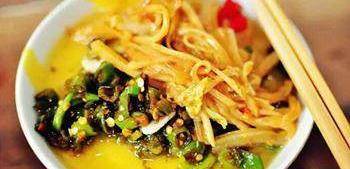 媳婦們吃散面飯,對菜可是很挑剔。炒菜,就炒野菜、炒韭菜,要麼就吃醃制的酸菜。和散面飯最般配的菜是漿水菜,盛一碗面魚兒,澆上汁兒,再放上紅辣椒、炒韭菜,酸酸的、辣辣的、紅紅的、綠綠的、油油的、汪汪的,吃起來,那個暢快、那個味道、那個受活,真不知該咋樣來形容。