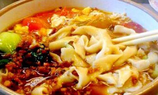 做法:取盆加入面粉,用淡鹽水和成較硬一些的面團,靜置半個小時,讓面團變得更加有韌性。註意期間要蓋上蓋或濕佈,防止面團幹裂。將面團反復揉搓至表面光滑,然後整理成長條形狀。一般大傢見到的是飯館的師傅一手拿面,一手用刀削,這個對刀功有一定考驗,一般人削的薄厚不一。再加上下入鍋裡的時間不同,容易出現有的已經煮爛,有的還是生的。