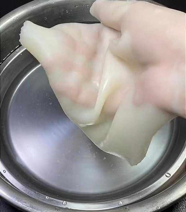 最後一步脫模,非常勁道爽滑的涼皮就制作完成瞭。