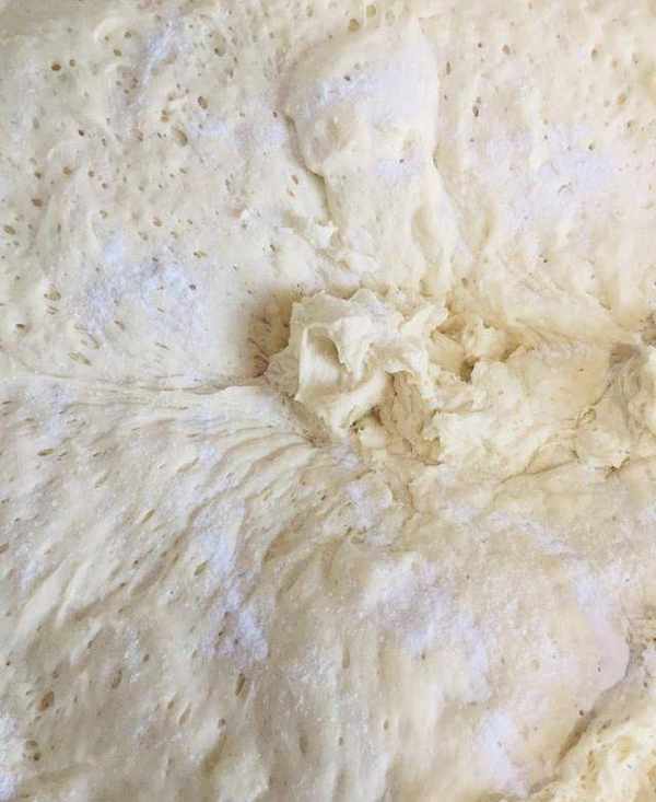4.經過兩個小時的發酵,面團已經發酵好瞭,因為面發的比較蓬松,所以我們在揉面之前,加入3克左右的蘇打粉,這樣可以讓面沒有那種發酵的酸味,做出來的面食也比較柔軟,然後將面鞣制五分鐘左右,再醒制上十分鐘,讓面能夠更好的綜合一下。