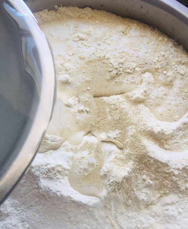 1。首先我們要發酵面粉,將8克酵撒在面粉上面,然後加入三十度左右的溫水,溫水的用量自己掌握,不要加多,依次加入就可以瞭。