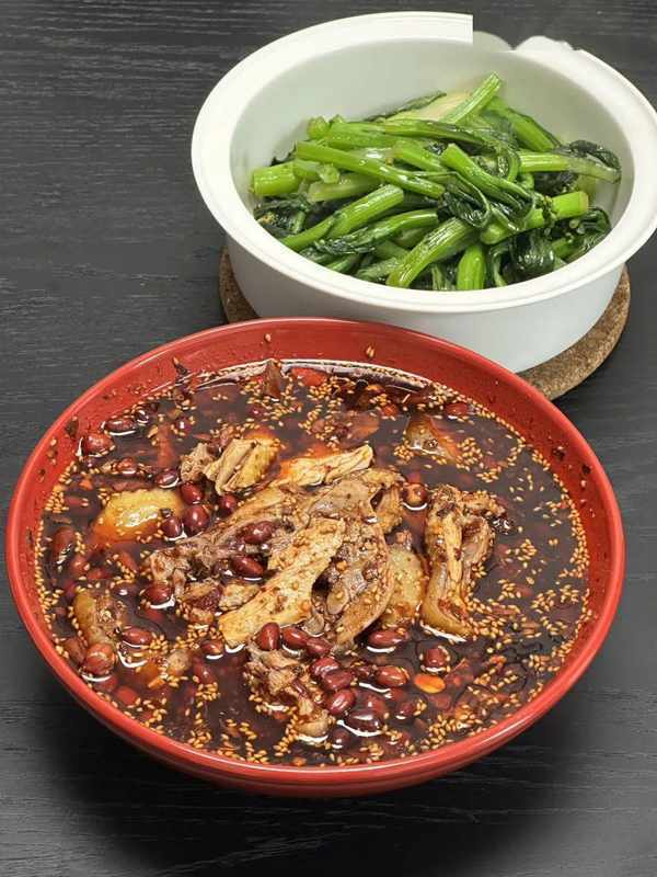 後面我自己往裡加瞭紅油辣子,吃著更香!