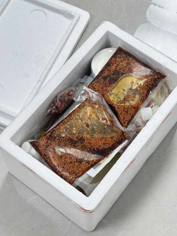 到手是這樣一大箱,除瞭牛肉豆豉可以久放,其它的冷藏保存三天內吃完。