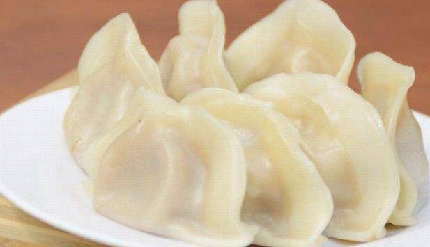 然後我們再用手把一個面片給托起來,並且往裡面加入一勺的肉餡,再把面片對齊來,然後用兩隻手捏緊,這樣一個餃子就包好瞭。等所有的餃子都包好之後,我們再把這些餃子放在一個托盤裡面,然後再把水倒進鍋裡面,並且把水燒開,接下來再把餃子倒進鍋裡面,用中火把餃子煮沸騰。等到煮沸之後,我們再往裡面加少量的冷水,這一步驟要多做幾次。