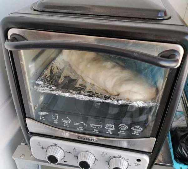 第6步、烤箱預熱,220℃上下加熱至表面金黃,然後在列巴表面鋪一張錫紙以防烤焦,溫度降至200℃繼續烤制半小時或根據自己烤箱情況加熱至全熟。