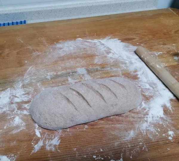 第5步、卷成均勻面棍,表面劃出斜紋(為瞭烤制時候均勻受熱不變形),此處用圖為上次做的蕎麥面半成品。