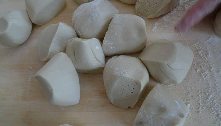8、把面團揉成長條,分成大小均勻的小劑子;