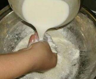 3、當面引子有小氣泡時,就可以用來和面瞭;