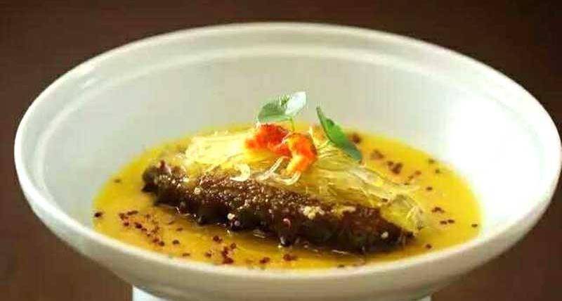 水發遼參、鮑汁、雞高湯、自制蔥油、藜麥、時蔬、鹽、食用花草