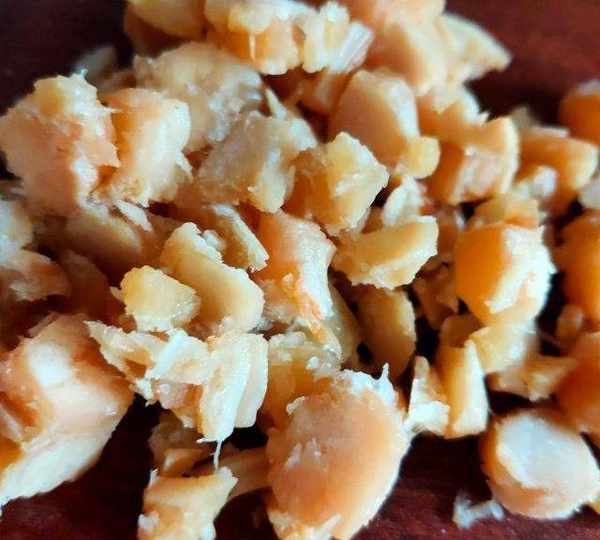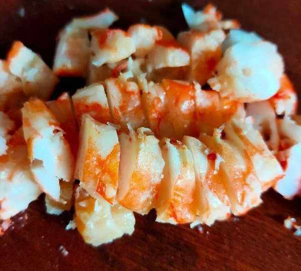 第8步、熟鮮貝切小塊兒。