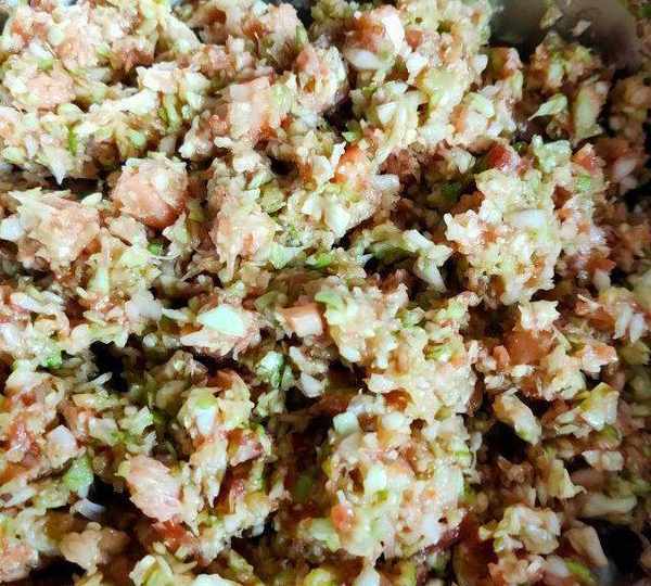 原料:普通面粉、豬肉餡、蝦仁、圓白菜、鮮貝、蔥薑末、鹽、雞精、香油、生抽、蠔油、花生油。