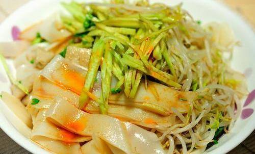 上次做瞭涼皮,雖受歡迎,但是洗面環節很是讓人煩惱,推薦給同事,都嫌麻煩。說實話我每次都洗的手脖子發酸。我的一山西朋友告訴我其實很多的山西涼皮是不用洗面的,並告訴瞭我具體步驟,今天終於有空一試,果然成功。兩種涼皮說不出具體的差別,都勁道,洗面的透明一些罷瞭,不洗面的涼皮感覺吃著更踏實。