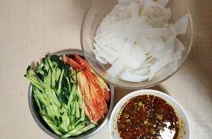 配料:胡蘿卜黃瓜綠豆芽鹽生抽香醋蒜瓣辣椒油香油花生油