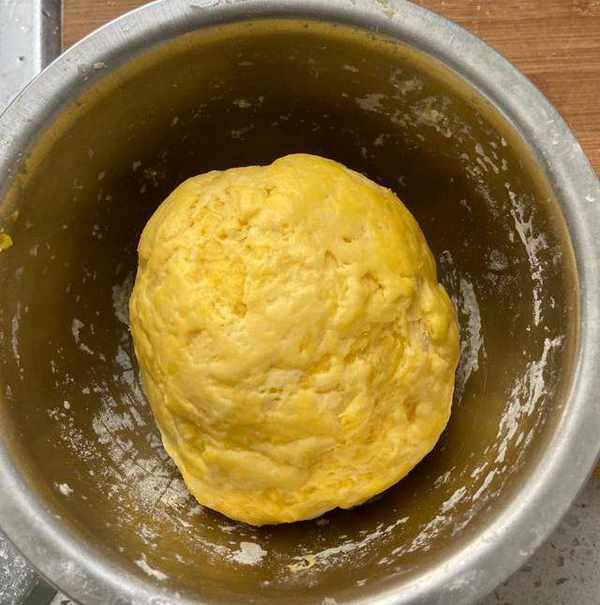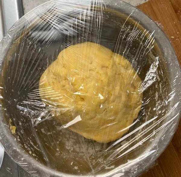 3.面揉均勻之後,放在容器中,蓋上保鮮膜封好,醒面20-30分鐘
