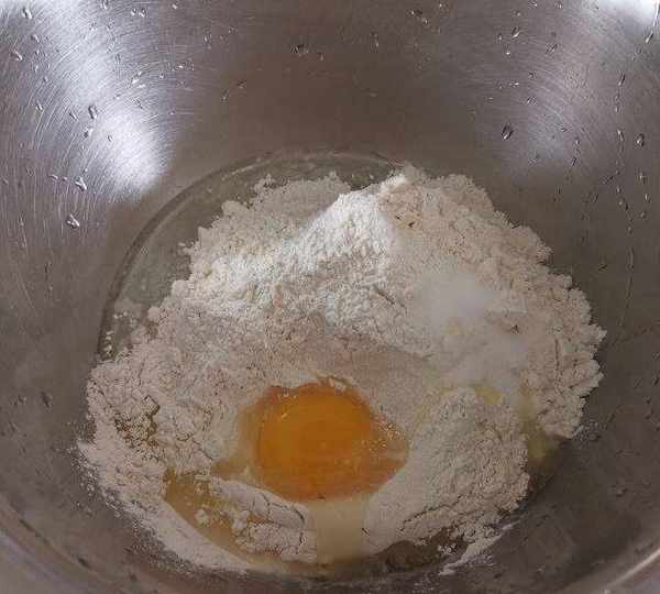 第1步、中筋面粉250克,加一個雞蛋,不能小於60克,加精鹽2克。