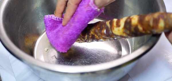 這個生粉跟面粉的吸附力是非常非常的強,如果這個臘制品表面油脂或者臟東西比較多,用面粉和生粉都可以把它清理得幹幹凈凈,沖洗幹凈以後的香腸是不是可以看到比較不一樣,清洗的非常幹凈,表面一點油脂都沒有好瞭。