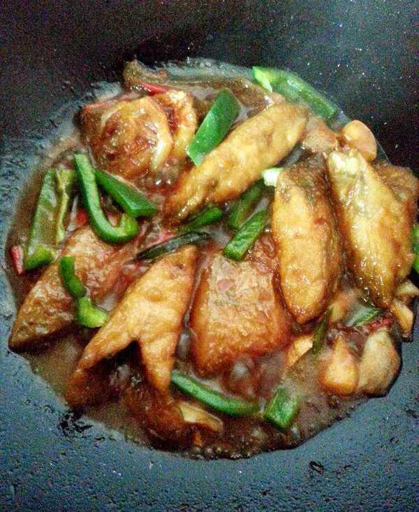 煮到剩少許湯水,下辣椒和青椒、蒜頭,輕攪勻。收汁差不多就OK瞭,色香味俱全,讓你想再一碗飯成品