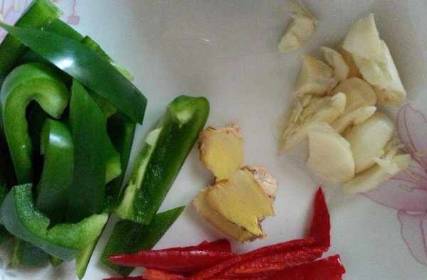 今天需要的材料有:帶魚1隻、紅辣椒1個、青椒1個、蒜頭3個、薑3片、青蔥1根、紹興酒或白酒1匙、砂糖1匙、地瓜粉少許、生抽2匙、味精1茶匙