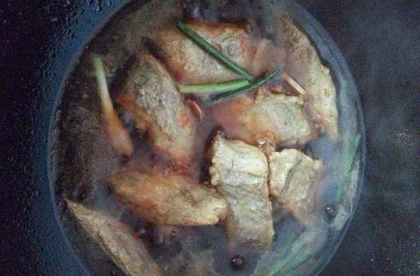 下油爆下蔥薑推一邊,下白糖炒出糖色,下碗水並下白酒、味精、少許醬油【生抽】。倒入魚塊