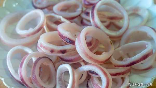 2、魷魚圈解凍後清洗一下備用。