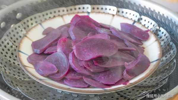 1、紫薯300克,先清洗幹凈,然後削皮,全部處理好後再切成片,切好後裝入盤子裡。