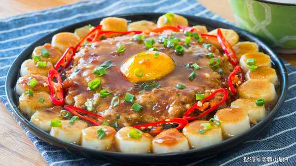 10、關火後直接把醬汁淋到肉餅和山藥上,再撒上小蔥花增香提色,喜歡吃辣的還可以放點辣椒,好吃的山藥蒸肉餅就做好瞭;