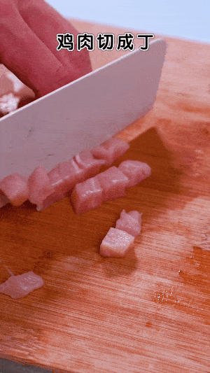 1,雞肉切成丁,土豆去皮、切丁;鍋中加水,水開放入土豆丁,煮至半熟後撈到空碗中。