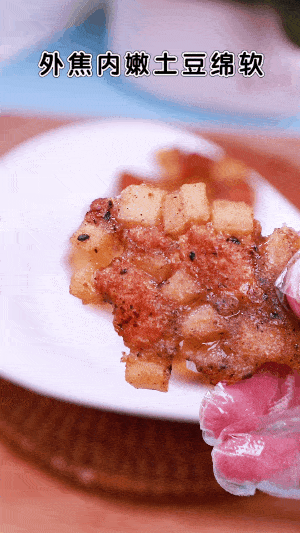 誰說土豆隻能炒著吃?切成土豆丁,搭配雞肉丁煎出來的小肉餅,外焦裡嫩,香噴噴的美味,好吃又營養,帶著寶寶外出踏青的時候,裝上幾塊,餓瞭就拿出來吃,寶寶愛吃得不得瞭!