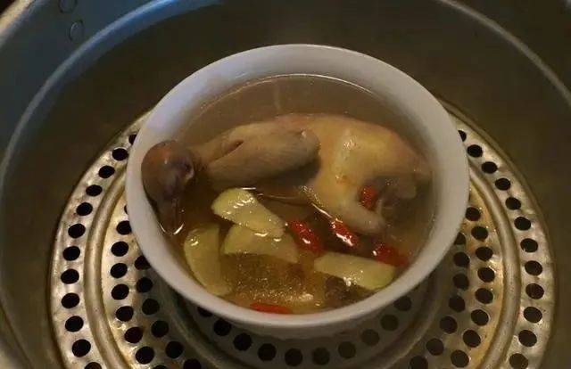 3、備一大碗,將焯過水的鴿子放入其中,隨後加入薑片、枸杞和紅棗,倒入適量的料酒,最後註入適量的開水,使鴿子完全被淹沒。將水倒入蒸鍋中,待水沸騰後,將其放入盛有鴿子的大碗中,進行1.5至2小時的蒸制。