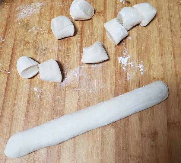 第7步、搓成長條狀,切成大小均勻的劑子。