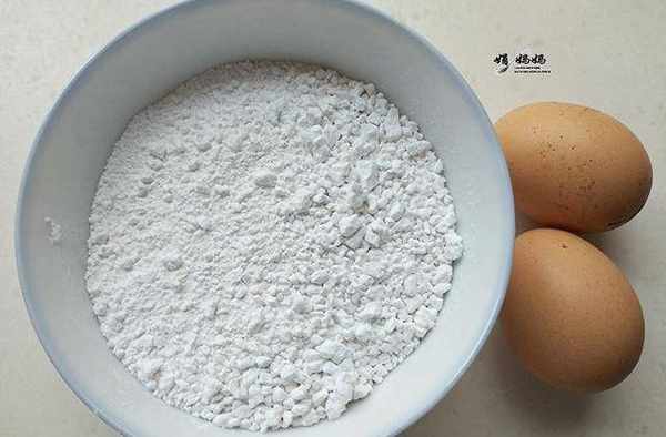 1、紅薯粉如果沒有時間壓碎的話,就把它放在雞蛋液裡面靜置幾分鐘,讓水分把紅薯粉泡散。