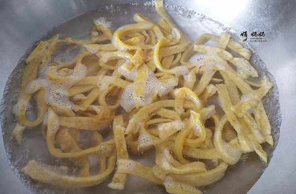 2、紅薯面餅攤過之後就已經是熟的瞭,丟入鍋中煮開就能撈出來吃啦。