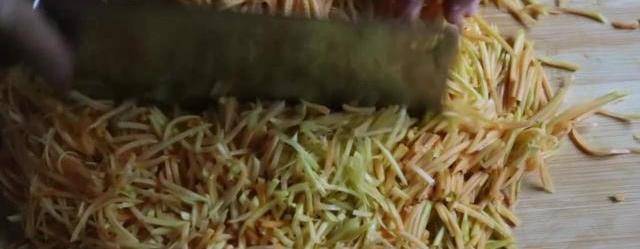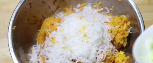 今天用南瓜和玉米面做好吃的,準備一個內點的南瓜,挖去挖人,削去外皮,用擦板擦成細絲。好。他好像是在切碎一點,加入一勺鹽,醃制10分鐘,殺一殺裡面的水分,碗中加入200克面粉,150克玉米面,攪拌均勻,加入開水,活成燙面,攪拌至沒有幹面粉,放溫以後揉成面團。把面活成光滑的面團,再醒面20分鐘,大蔥切成蔥花,薑切末,放入碗中備用,泡發好的粉絲切碎。放入碗中備用,殺好水的南瓜放入紗佈裡,用力擠出多餘的水分。