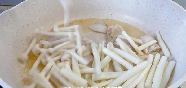 鍋裡面加點食用油,涼油,把肉片倒入裡面翻炒一下,把肉片翻炒至變色,翻炒好之後再加點海鮮菇,這裡提前加入海鮮菇翻炒一下,可以去除一下裡面的味道,再加入蔥花、蒜末、薑絲翻炒均勻,炒出香味。如果喜歡吃海鮮菇的味道
