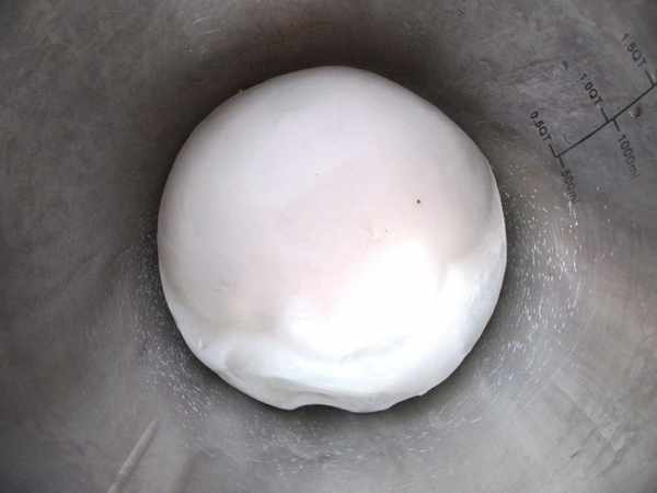 第一步:麵粉200克加入澱粉50克,打入一個雞蛋和適量得水和成麵團,靜置一會揉勻揉光。