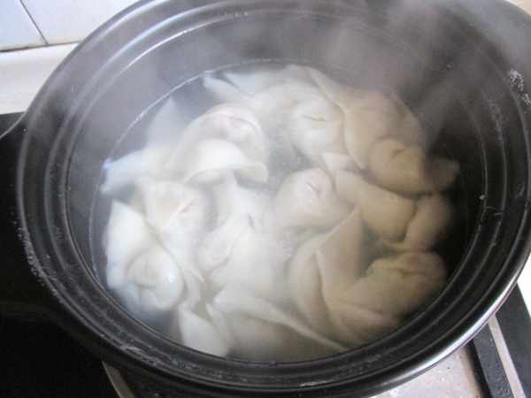 第七步:鍋裏放水燒開,煮上餛飩,煮熟即可關火。