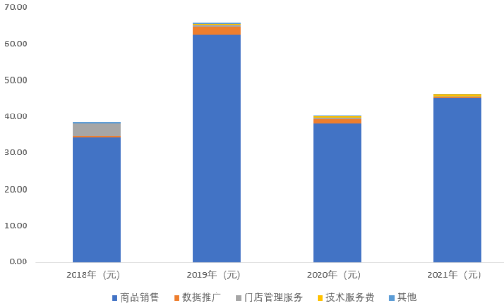 壹玖壹玖——目前收入構成中,商品銷售、技術服務費、門店管理服務、數據推廣、其他,分別占比98.10%、1.13%、0.46%、0.18%、0.13%。