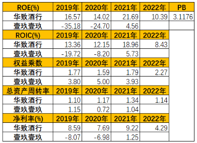 從凈資產收益率來看,華致酒行>壹玖壹玖。