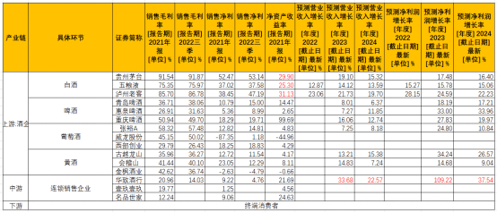 從成長性來看,中遊連鎖銷售企業預期增長較快,主要是酒水流通賽道,市場集中度低,當前正處於渠道向頭部集中的初期,預期企業發展空間較大。