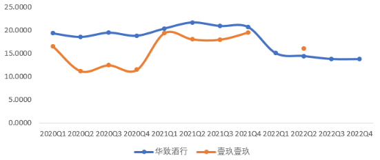 從毛利率來看,2021年之前,華致酒行>壹玖壹玖,2022年上半年趨於接近。