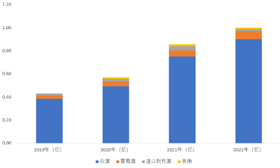 中國酒類消費市場空間=白酒消費均價*白酒消費量+啤酒消費均價*啤酒消費量+其他酒消費市場規模